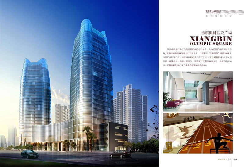 深圳政府部門為了改善民營企業的辦公條件,支持民營企業的發展意向,在新中心區的規劃中專門劃出地塊,計劃籌建“企業總部”司供500家大中型企業進駐辦公。該建設項目由我司擬定于2016年計劃投資4億元人民幣興建一座集辦公、商業、公寓為一體的現代化只能辦公大廈,高度約為150米,建筑面積約16萬平方米的香繽奧林匹克中心。