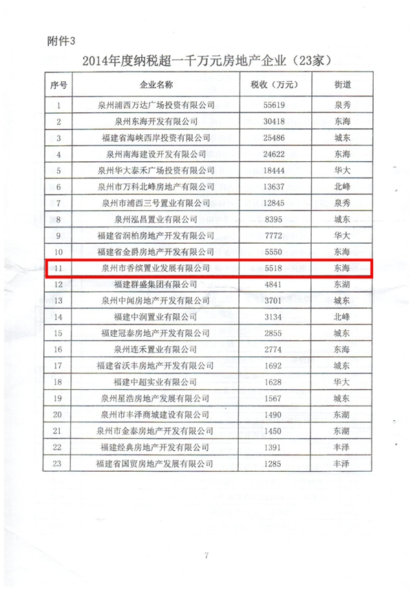 本網(wǎng)訊:近日,泉州市豐澤區(qū)人民政府下放第22號文件,對區(qū)域內(nèi)“二次創(chuàng)業(yè)”和應(yīng)對新常態(tài),加強(qiáng)企業(yè)技術(shù)管理、創(chuàng)新和產(chǎn)業(yè)升級轉(zhuǎn)型取得突出成績的企業(yè)給予表彰。我集團(tuán)旗下企業(yè)“泉州香繽置業(yè)”2014年納稅達(dá)5518萬元人民幣,榮獲政府重點(diǎn)表揚(yáng),并連續(xù)兩年成為泉州納稅大戶。