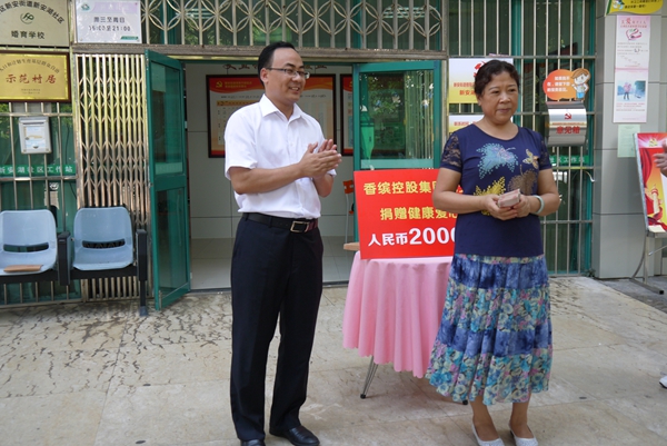 香繽廣場(chǎng)業(yè)主王劍剛先生2年前發(fā)現(xiàn)癌癥晚期,經(jīng)過(guò)多次醫(yī)治已花光所有積蓄,欠帳數(shù)萬(wàn),家庭生活處于極度困難,病情亦日趨嚴(yán)重,無(wú)法繼續(xù)醫(yī)治。在街道領(lǐng)導(dǎo)班子接訪群眾時(shí)得知此情況后號(hào)召愛(ài)心人士給予支援,我集團(tuán)積極響應(yīng)街道黨工委的號(hào)召,以現(xiàn)金的方式向業(yè)主伸出援助之手,反哺業(yè)主。